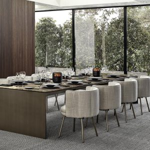 Ghế ăn Torii GA44 có phần tựa lưng mỏng có các đường chần dọc và một đường ống chạy dọc theo chu vi của đệm, nhấn mạnh chất lượng cao cấp của tay nghề thủ công. Chân sắt có màu hơi tương phản, có cùng tông màu với vải, nếu kết hợp với lớp phủ dệt, trong khi các phiên bản da có cùng tông màu khi kết hợp với bọc da. Tất cả các yếu tố bọc của hệ thống có thể được tùy chỉnh bằng cách chọn lớp bọc: 100% vải hoặc da, hoặc bằng vải có đế bằng da.